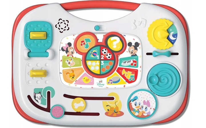 - po środku znajduje się dotykowa membrana z treściami edukacyjnymi,