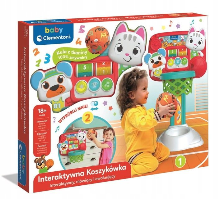 Kosz zlicza zdobyte punkty i uczy liczb oraz pierwszych słów.