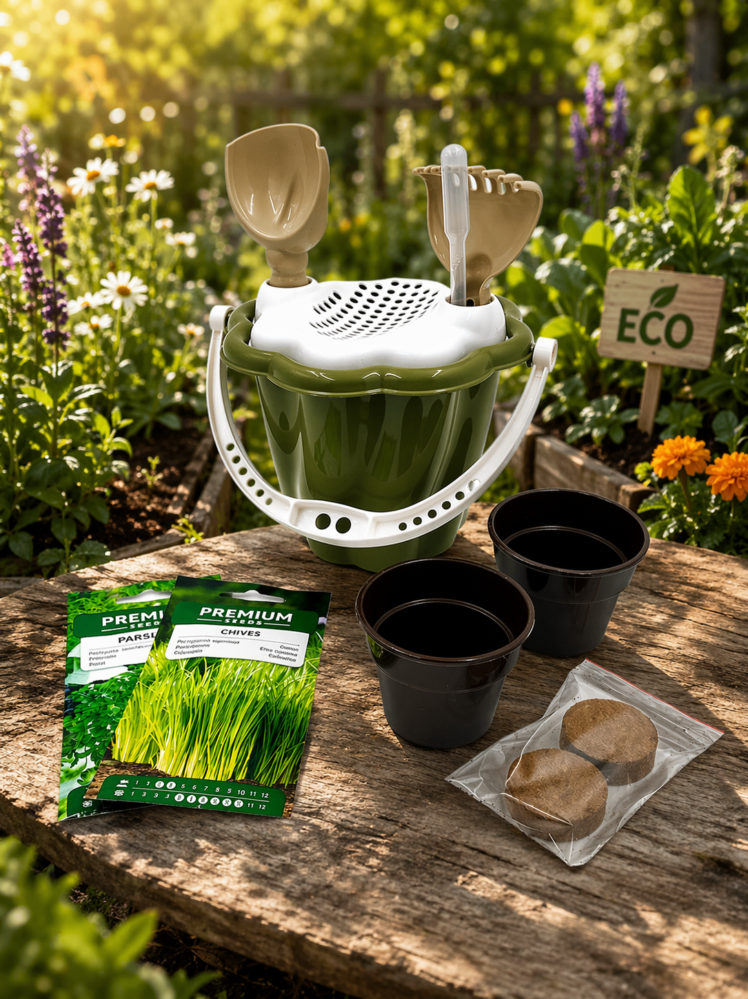 Kompaktowy i atrakcyjny wizualnie zestaw ogrodniczy dla dzieci od Zabawkarstwo Bączek, który łączy zabawę z nauką uprawy roślin. Produkt idealnie wpisuje się w trend EKO oraz rozwijających zabawek edukacyjnych.