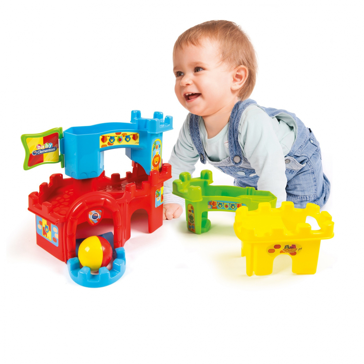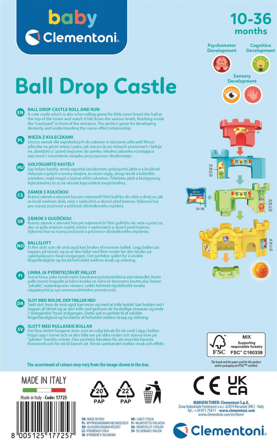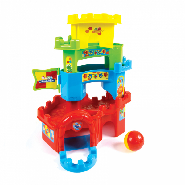 • Dziecko może obserwować trasę piłki wzdłuż ścieżki wewnątrz zamku i wzdłuż murów: upuść piłkę na wierzchołku wieży i patrz, jak porusza się przez różne poziomy, aż zatrzyma się na dziedzińcu przed wejściem.