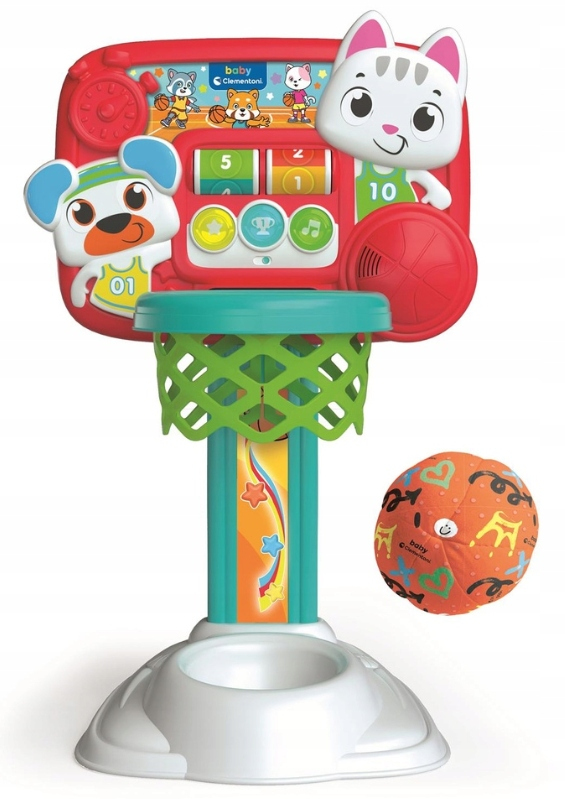Kosz zlicza zdobyte punkty i uczy liczb oraz pierwszych słów.