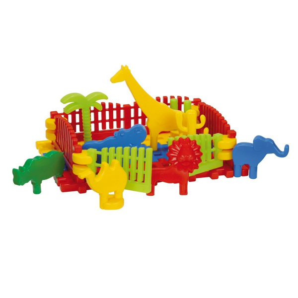 Zabawka przedstawia zagrodę w której znajdują się zwierzątka afrykańskie takie jak: żyrafa, lew, hipopotam, słoń. Jest to idealna propozycja dla dzieci, które interesują się zwierzętami afrykańskimi. Klocki z zestawu Afrykańskie Safari zachwycają wyrazistą, żywą kolorystyką i ciekawymi kształtami. Całość została wykonana z miękkiego i bezpiecznego tworzywa. Ten atrakcyjny zestaw śmiało można podarować nawet rocznemu dziecku.