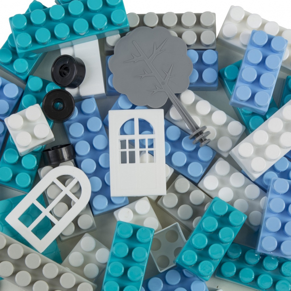 Duży zestaw klocków liczący 500 elementów zapakowany w plastikowy pojemnik, który ułatwia przechowywanie. Klocki w pastelowej kolorystyce, które świetnie komponują się zarówno z kolorystyka standardowa jak i dziewczęcą. W zestawie, prócz klocków, można znaleźć wiele różnorodnych dodatków takich jak okna, drzewa, płotki, znaki drogowe, samochody, daszki, dzięki którym można zbudować wiele ciekawych konstrukcji rozpoczynając od tych prostych kończąc na bardziej skomplikowanych. Dzięki temu taki zestaw klocków posłuży dziecku na wiele lat, gdyż każdego dnia może odkrywać nowe możliwości. Zabawa klockami pozytywnie wpływa na rozwój dziecka, gdyż pobudza rozwój kreatywności, koordynacji wzrokowo-ruchowej czy też zdolności manualnych.