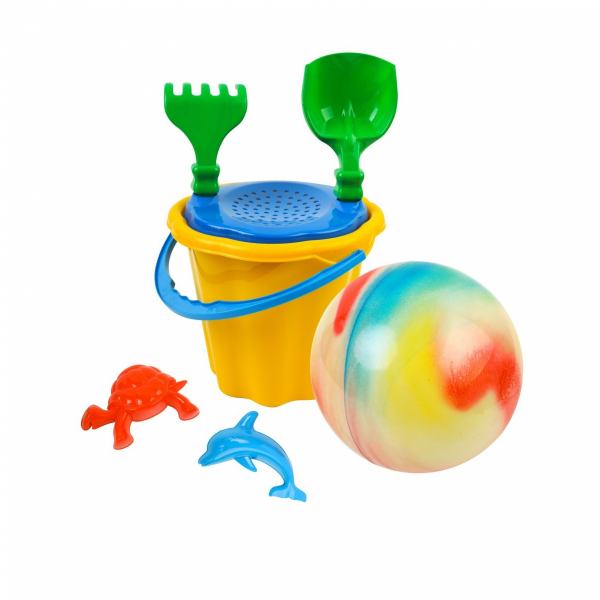 Wiaderko z sitkiem, foremki, grabki, łopatka oraz piłka – w tym zestawie nie brakuje niczego! Komplet akcesoriów do zabawy w piasku zapewni każdemu maluchowi moc rozrywki i okaże się niezastąpiony podczas licznych wakacyjnych wojaży. Zestaw składa się z siedmiu elementów – wiaderka z sitkiem, dwóch foremek w kształcie delfina i żółwia, grabek, łopatki oraz piłki. Wszystkie elementy wyróżniają się atrakcyjną kolorystyką i są wykonane z wytrzymałych i bezpiecznych materiałów. Zabawka dostarczy dzieciom mnóstwo zabawy i zajmie je na długi czas!
