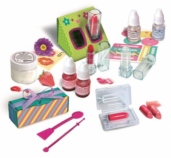 Zawiera wszystko, co jest potrzebne do łatwego i przyjemnego wykonania szminek i błyszczyków do ust, w tym przyrządy naukowe!