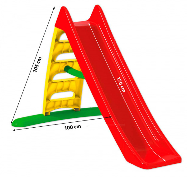 Zjeżdżalnia plastikowa - stabilna zjeżdżalnia do najmniejszego, szybkiego montażu bez użycia narzędzi, wyprodukowana na Węgrzech z bardzo wytrzymałego tworzywa o trwałej kolorystyce - odpornego na zmiany temperatury i światło słoneczne. Zjeżdżalnię uzupełniają antypoślizgowe stopnie. Długość zjeżdżalni 170 cm.